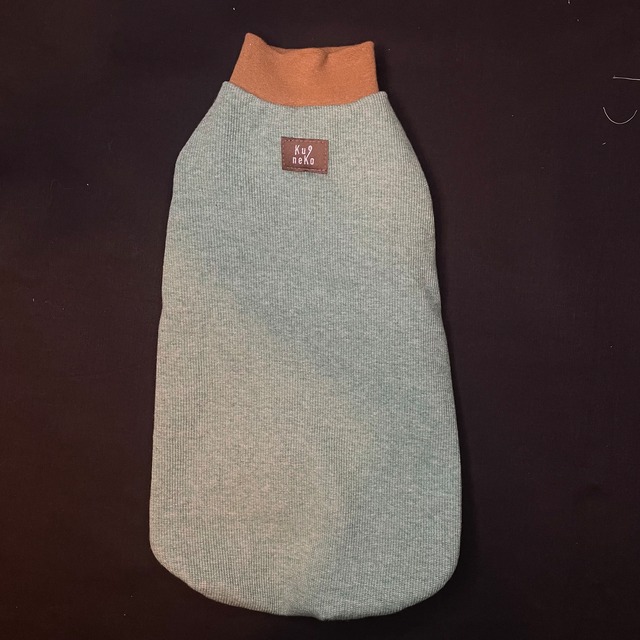 肌に優しい綿素材。グリーン杢✖️モカのシックな配色のデザインです。締め付けない、動きやすいデザインとなっています。気持ちよく過ごせるよう、細部までこだわりを持って仕上げました。 夏のエアコン冷気からの保温や寒い日の肌着としてもおすすめします。ぜひ、一度お試しくださいませ! 着心地もデザインも完璧なこのタンクトップは、きっとネコちゃんの運動シーンに欠かせないアイテムになることでしょう。是非お試しください。 COLOR - グリーン杢✖️モカ MATERIAL - 綿95%、ポリウレタン5% SIZE - XL XLサイズ ●襟(首周り) 約23cm ●胸囲(胸周り) 約38cm ●腹囲(腹周り)約40cm ●背丈(着丈)約36cm ●参考体重 約4.0-4.5kg 商品サイズについて ●襟(首周り)首輪をしている位置の周りを一周した寸法です。 ●胸囲(胸周り) 前足後ろ付け根の胸を一周した寸法です。 ●腹囲(腹周り)お腹(おへそ辺り)を一周した寸法です。 ●背丈(着丈)首の付け根から背中を通り、尻尾の手前までの寸法です。 猫服はこんな役割があります。 皮膚保護、抜け毛予防、舐め予防、汚れ予防、虫・ノミ・ダニ・蚊予防、紫外線日焼け対策、防寒クーラー対策、怪我対策 ku9nekoのお洋服は全てLisa代表がセレクトした生地から、一つ一つ日本での職人による手作りの服となります。 注:お洋服が初めての猫ちゃんはしばらく動かなかったり、バランスが取れない場合がありますので、慣れるまではそばで見守ってあげて下さい。 ※普段お洋服を着用されていない子は、ウェア着用後しばらくは、歩き方がぎこちなかったり、コロンと倒れてしまう場合があります。歩きになれるまでは、そばで見守ってあげてください。 ※大きめのサイズを着用されますと隙間より傷口に舌が届く場合があります。脱げる原因にもなりますのでピッタリサイズをおすすめいたします。 ※毛の長い子は長時間着用していると毛玉ができることがあります。また、脱衣後はブラッシングをしてあげてください。 ※表示寸法は、ヌードサイズでの許容範囲です。ウェアの出来上がり寸法ではありませんので、ご注意ください。 ※サイズ選びの際、大きめを選ぶと、手足がぬげやすくなる原因になります。体型に合ったサイズをお選びください。 ※採寸時は、座ったり、寝たりした状態ではなく、必ず四つん這いに立たせ、数回採寸したデータの平均値をとることをおすすめします。(可能であれば、二人一組で採寸願います) ※伸縮性のある素材を使用しているため、多少の誤差が生じる場合があります。また、参考体重は個人差により異なります。ご了承くださいませ。 ※脇腹に付いているサイズネームを気にする場合はハサミでカットしてください。 ※皮膚保護服は脱いでしまうと意味が無いので、脱げにくくする為に着脱は少し、しにくくなります。 ※サイズについては、事前にご確認ください。