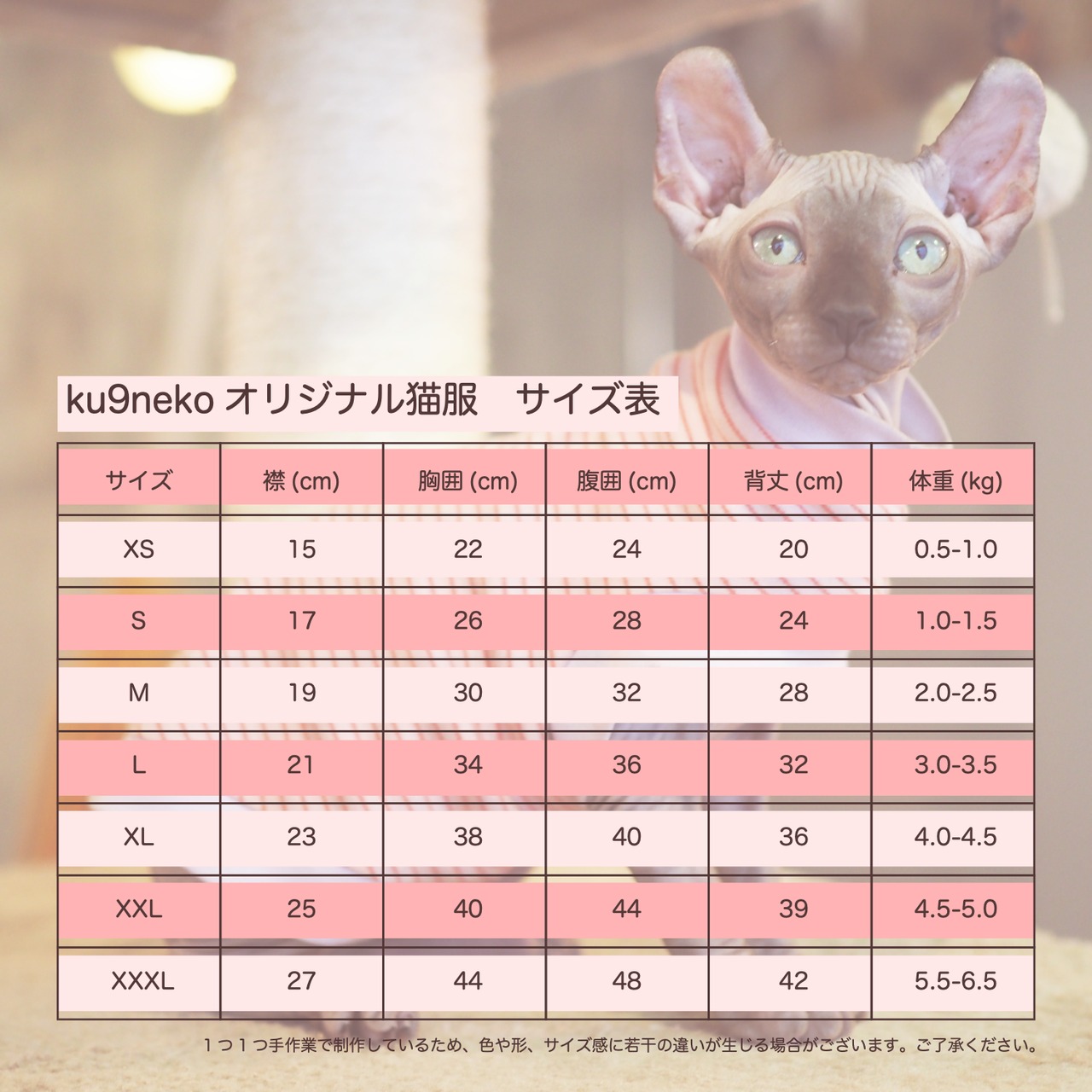 ●背丈(着丈)首の付け根から背中を通り、尻尾の手前までの寸法です。