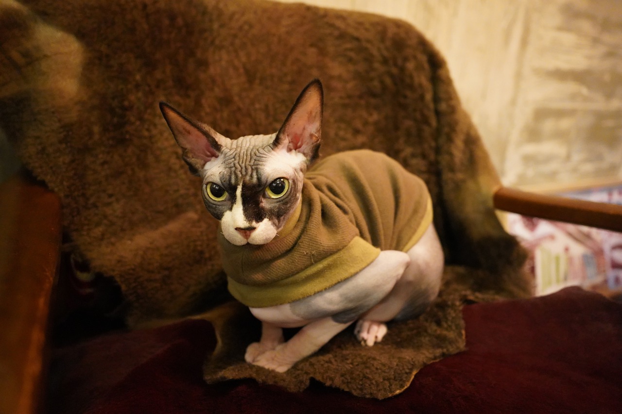 注:お洋服が初めての猫ちゃんはしばらく動かなかったり、バランスが取れない場合がありますので、慣れるまではそばで見守ってあげて下さい。