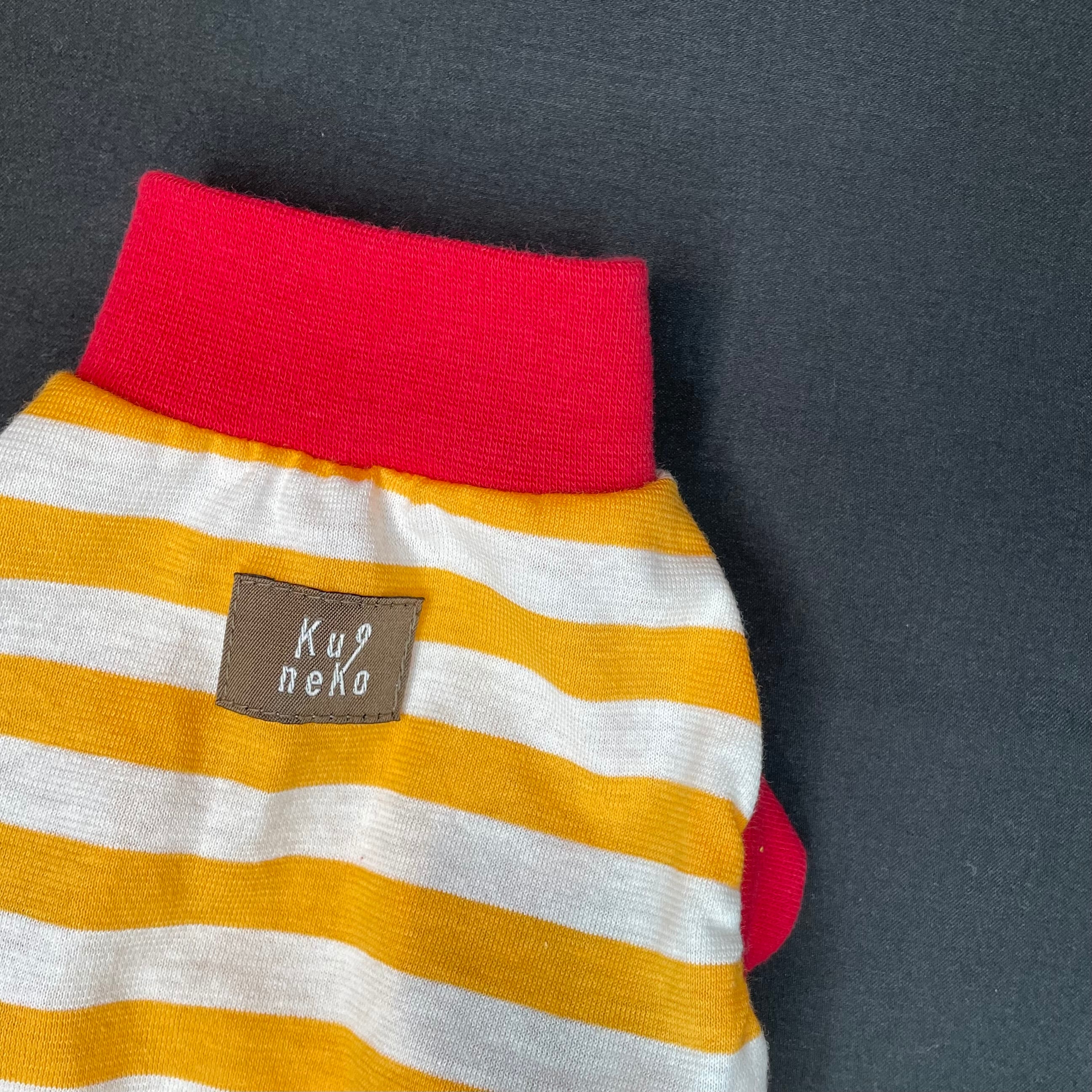 夏のカジュアルスタイルには欠かせないタンクトップが新登場!オレンジと白のボーダー柄に、赤色がアクセントになったデザインです。動きやすい綿素材を使用しております。 着心地もデザインも完璧なこのタンクトップは、きっとネコちゃんの運動シーンに欠かせないアイテムになることでしょう。是非お試しください。