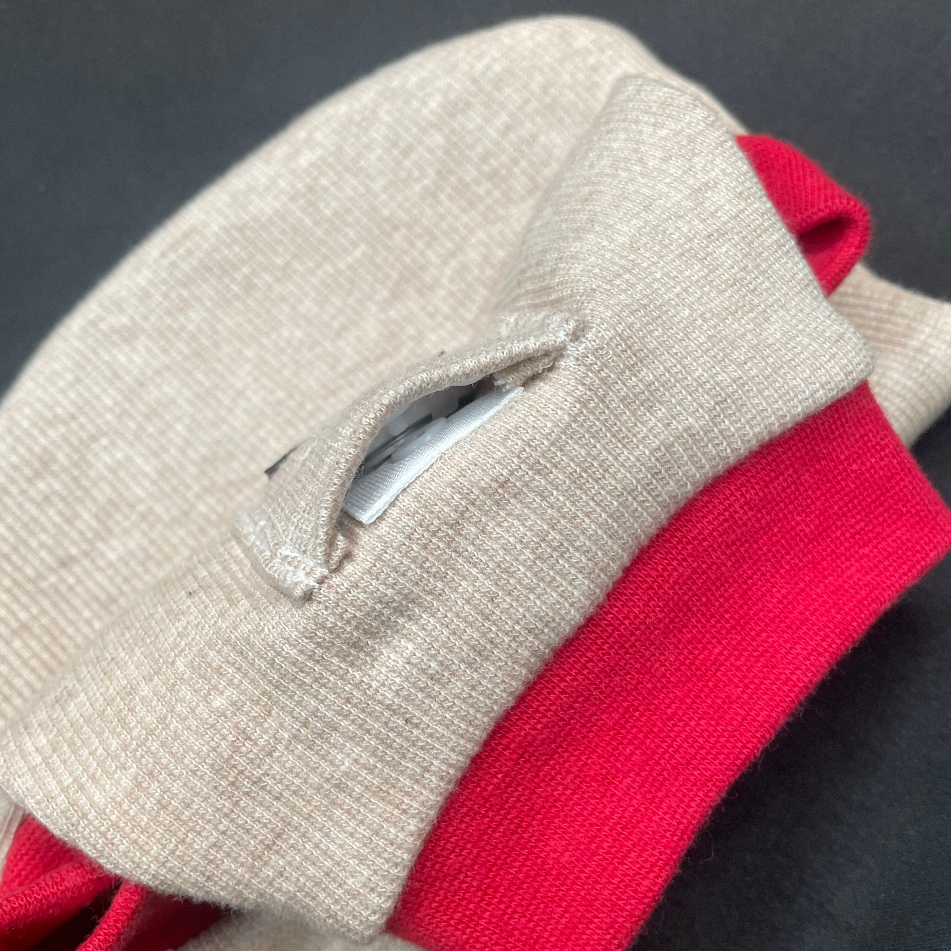 AirTagが丁度収まるポケットサイズです。ボタン付きポケットなので紛失しにくくなっております。お洋服にポケットがついているので違和感なくGPS管理が可能です。