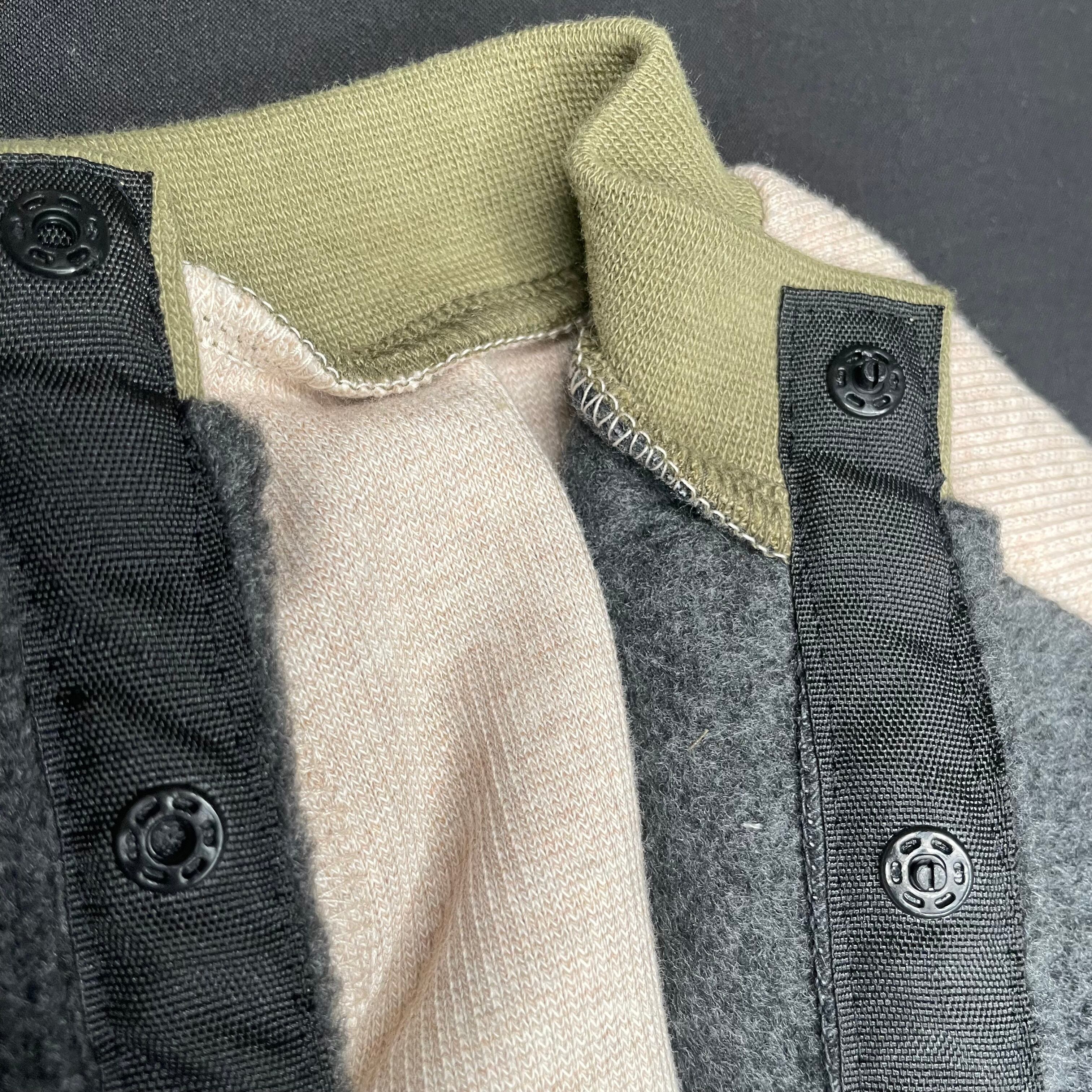 2本足フリース背中開きタイプが登場しました!グレーとベージュ杢の絶妙な組み合わせが魅力的で、普段使いにもぴったりのデザインです。背中が開いたスタイルは、着用やすさとおしゃれを兼ね備えており、これからの季節に活躍すること間違いなしです。ぜひ、一度お試しくださいませ!