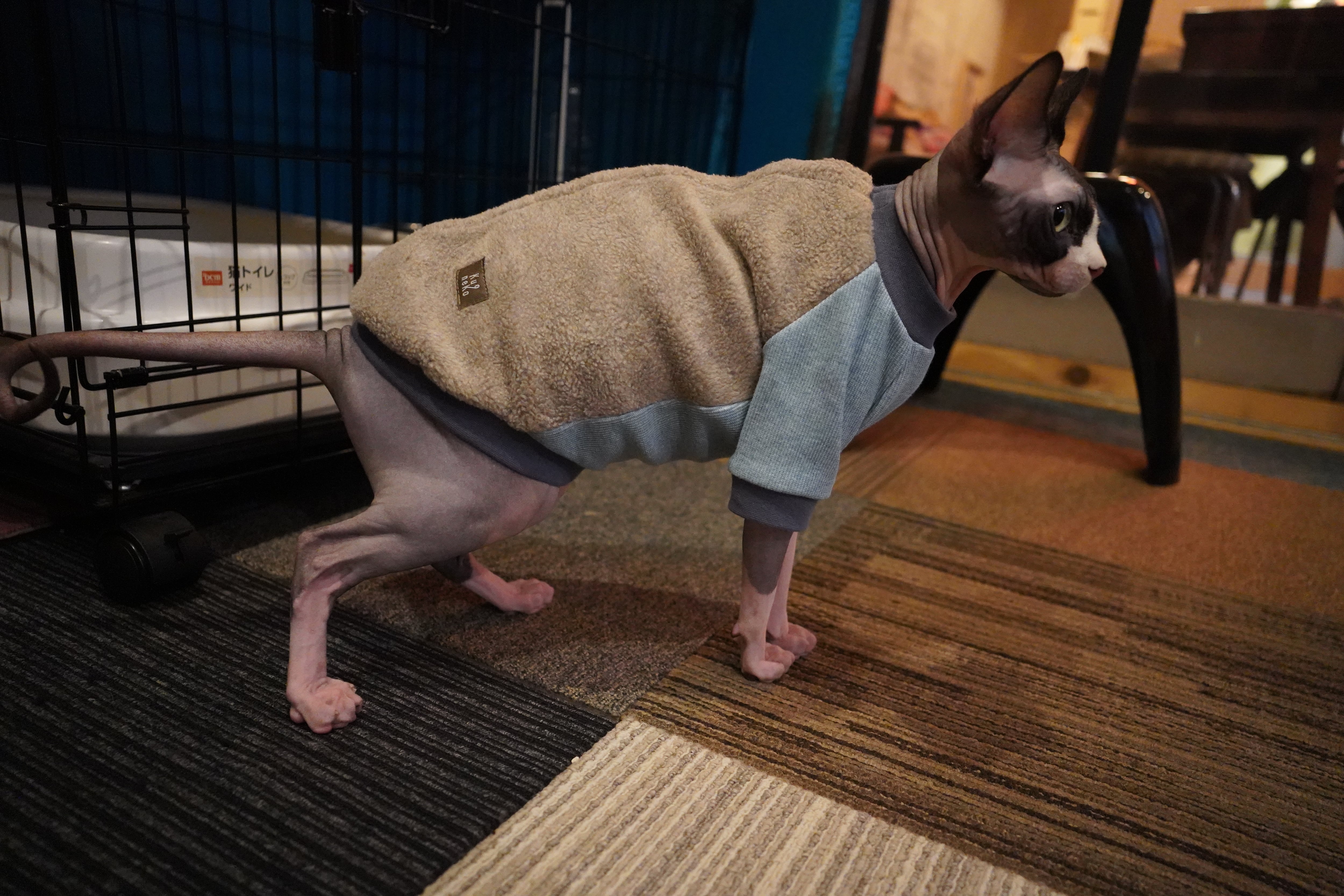 注:お洋服が初めての猫ちゃんはしばらく動かなかったり、バランスが取れない場合がありますので、慣れるまではそばで見守ってあげて下さい。