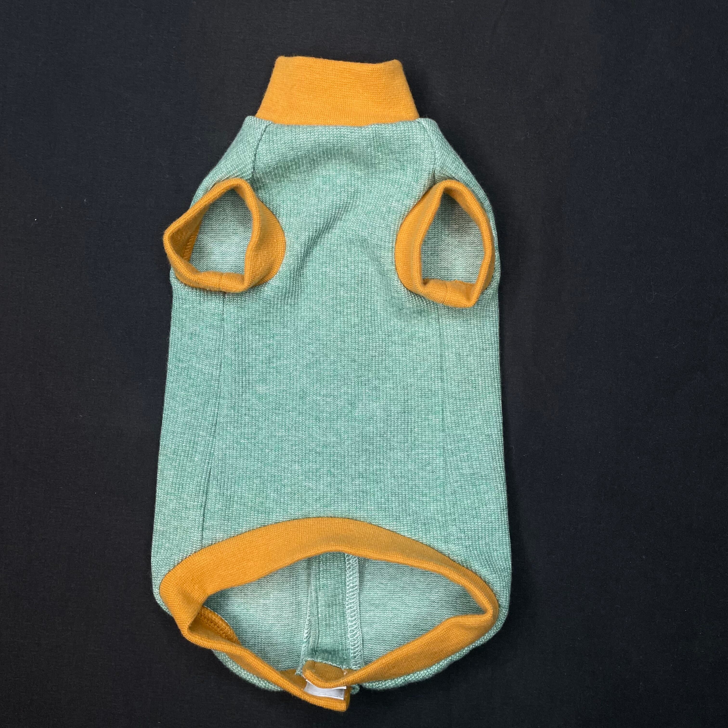 タンクトップの背中開きタイプが新登場!グリーン杢✖️マスタードのシンプルなデザインです。肌に優しく動きやすい綿素材を使用しております。背中が開いたスタイルは、着用やすさとおしゃれを兼ね備えています。ぜひ、一度お試しくださいませ! 着心地もデザインも完璧なこのタンクトップは、きっとネコちゃんの運動シーンに欠かせないアイテムになることでしょう。是非お試しください。