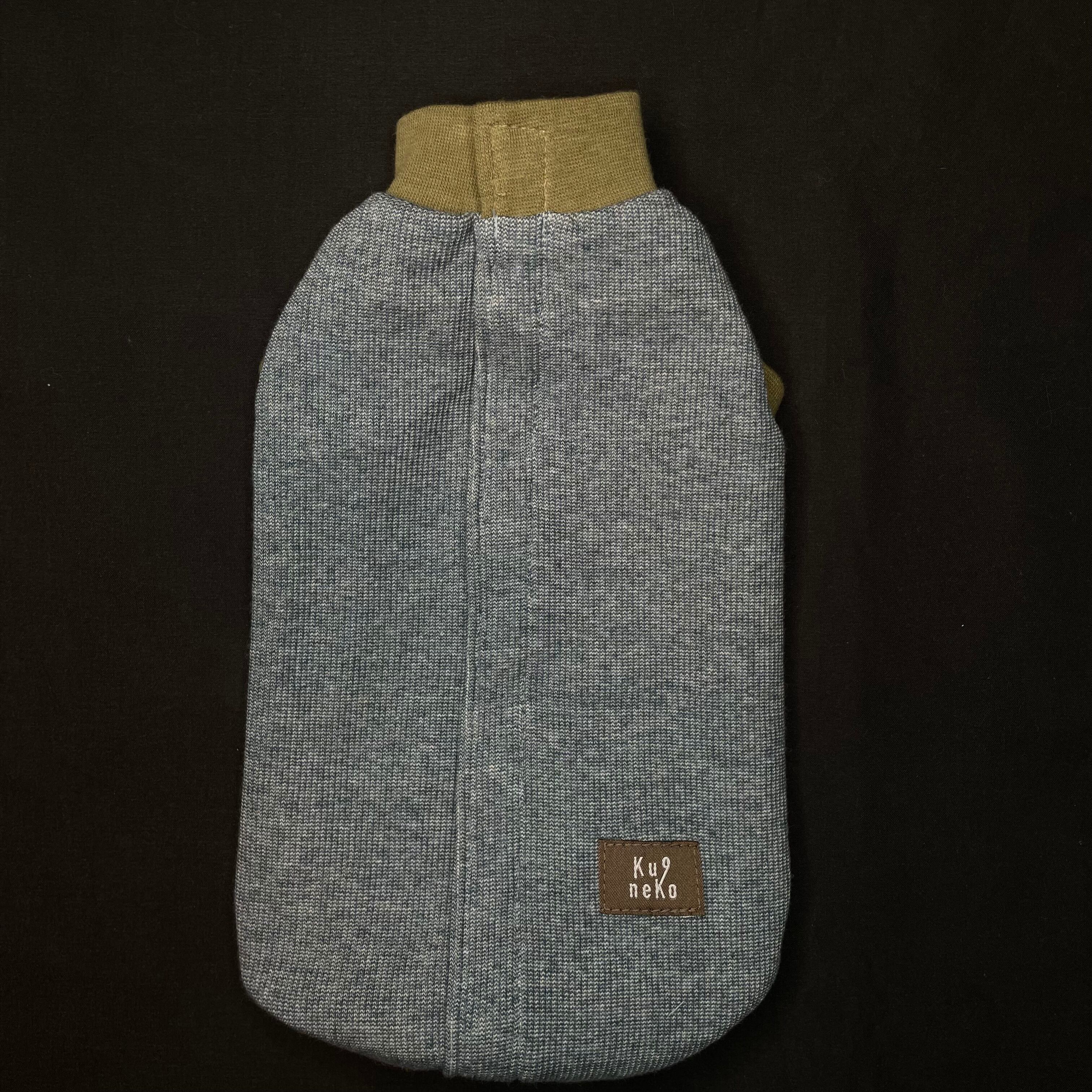 タンクトップの背中開きタイプが新登場!ブルーネイビー杢✖️オリーブの落ち着いた雰囲気の配色デザインです。肌に優しく動きやすい綿素材を使用しております。背中が開いたスタイルは、着用やすさとおしゃれを兼ね備えています。ぜひ、一度お試しくださいませ! 着心地もデザインも完璧なこのタンクトップは、きっとネコちゃんの運動シーンに欠かせないアイテムになることでしょう。是非お試しください。