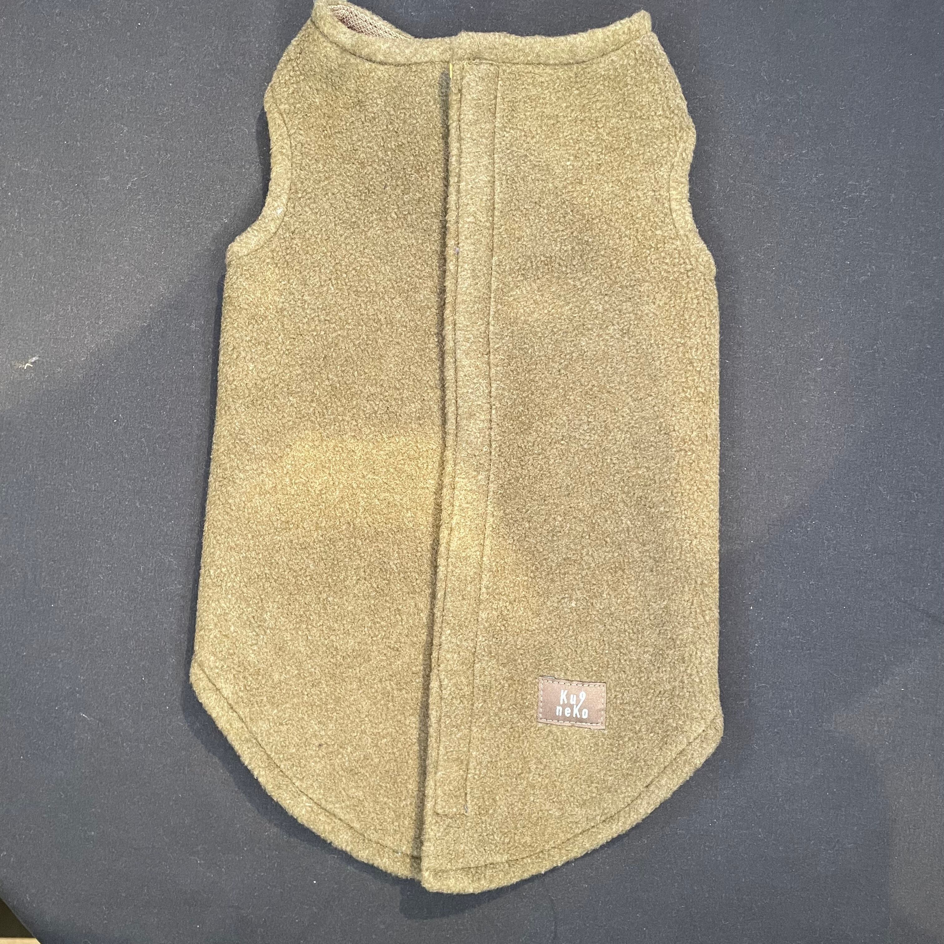 おしゃれなデザインと暖かさを兼ね備えたベストが登場しました!オリーブのシンプルなカラーです。すっきりとしたシルエットで、どんなコーディネートにもマッチします。重ね着にもぴったりのアイテムです。 しかも、素材にこだわったベストはとっても暖かいんです。 猫もこの一枚でおしゃれを楽しみながら、暖かい冬を過ごしてみませんか?