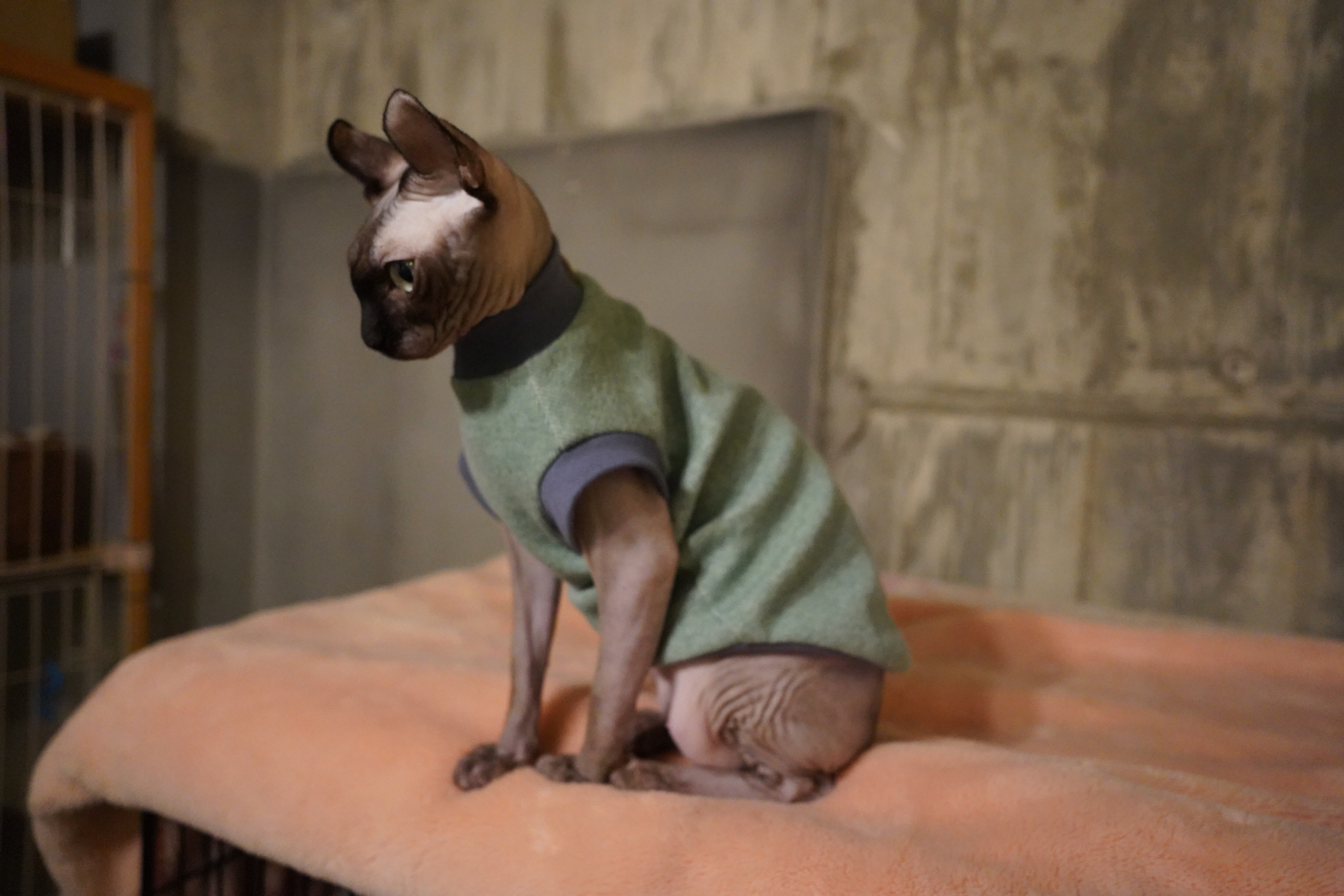 注:お洋服が初めての猫ちゃんはしばらく動かなかったり、バランスが取れない場合がありますので、慣れるまではそばで見守ってあげて下さい。