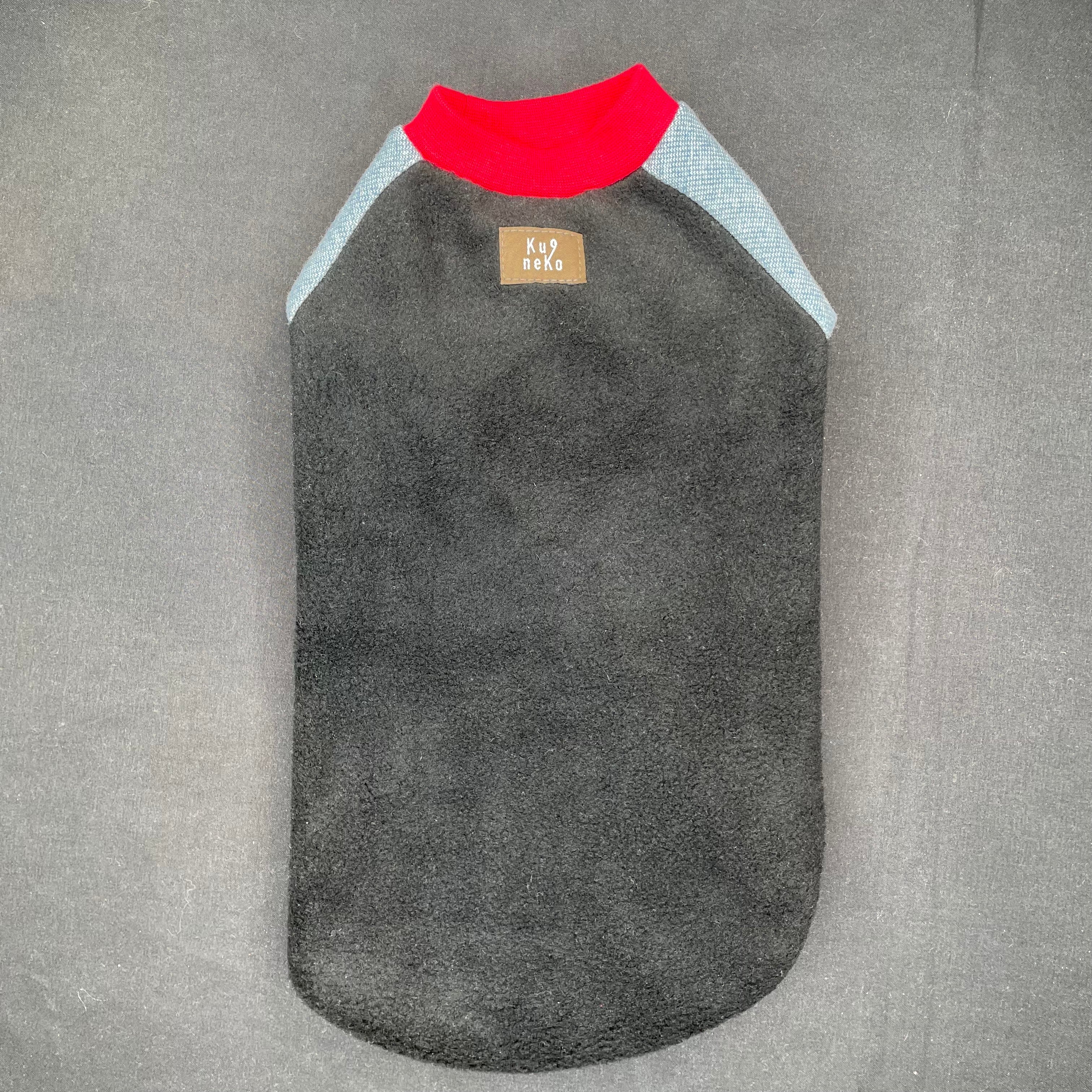 Tシャツ2本足タイプです。シンプルなブラックに赤がアクセントになったおしゃれな配色です。フリースと綿素材を使用した生地は寒い季節にピッタリ!足首を隠してくれる2本足タイプは、冷え性の子にもぴったり。身体を包み込むような心地よい着心地です。 この冬、快適な着心地で過ごしましょう。