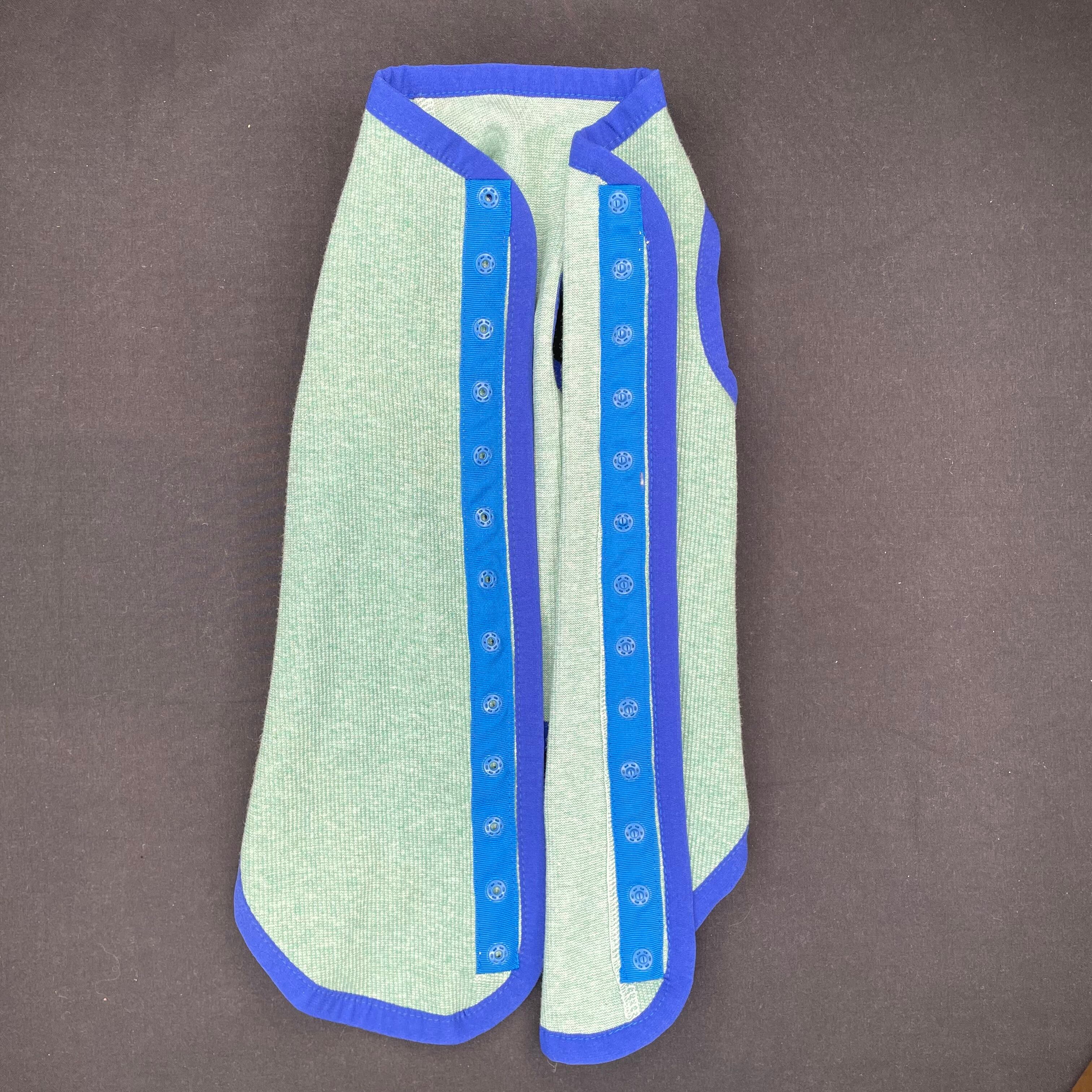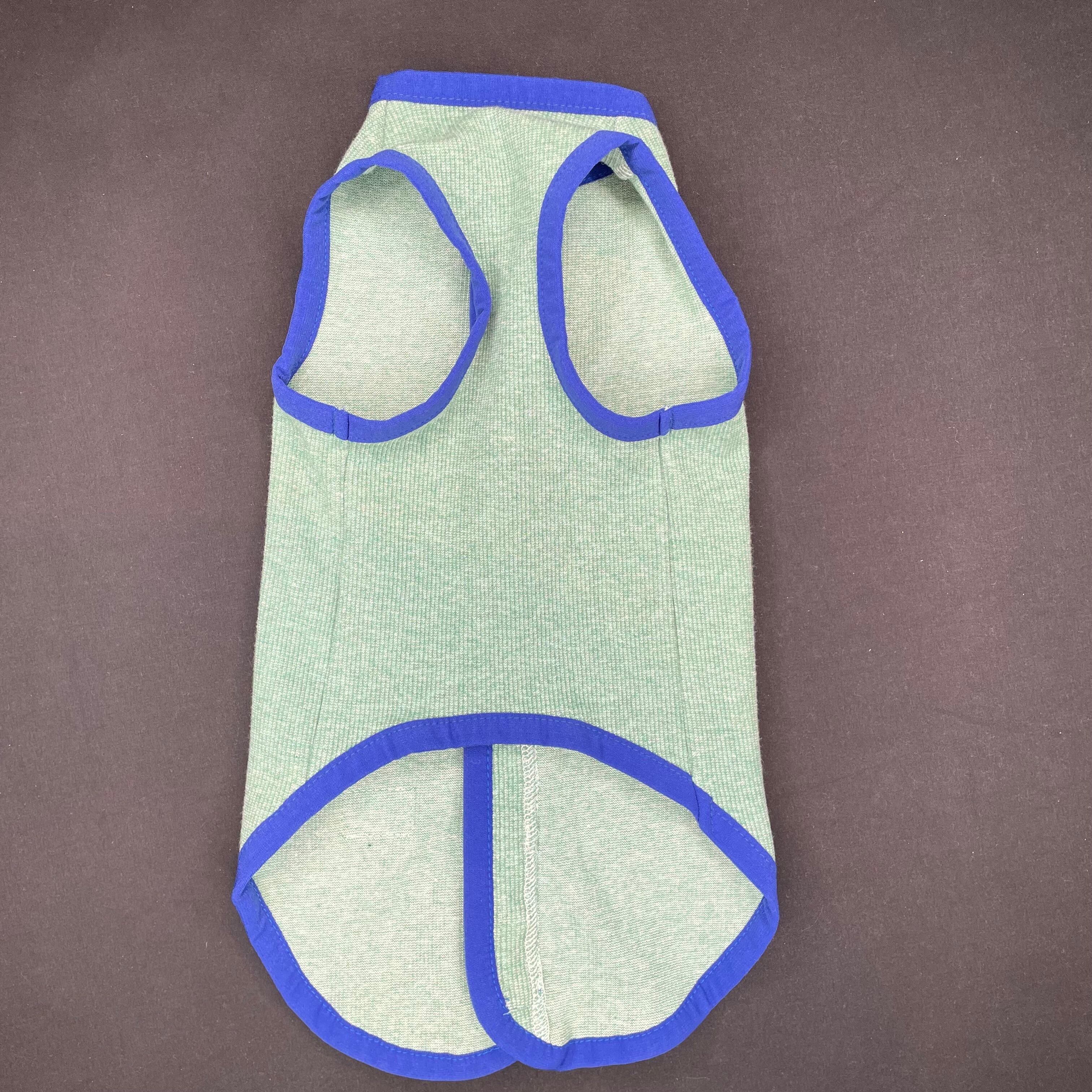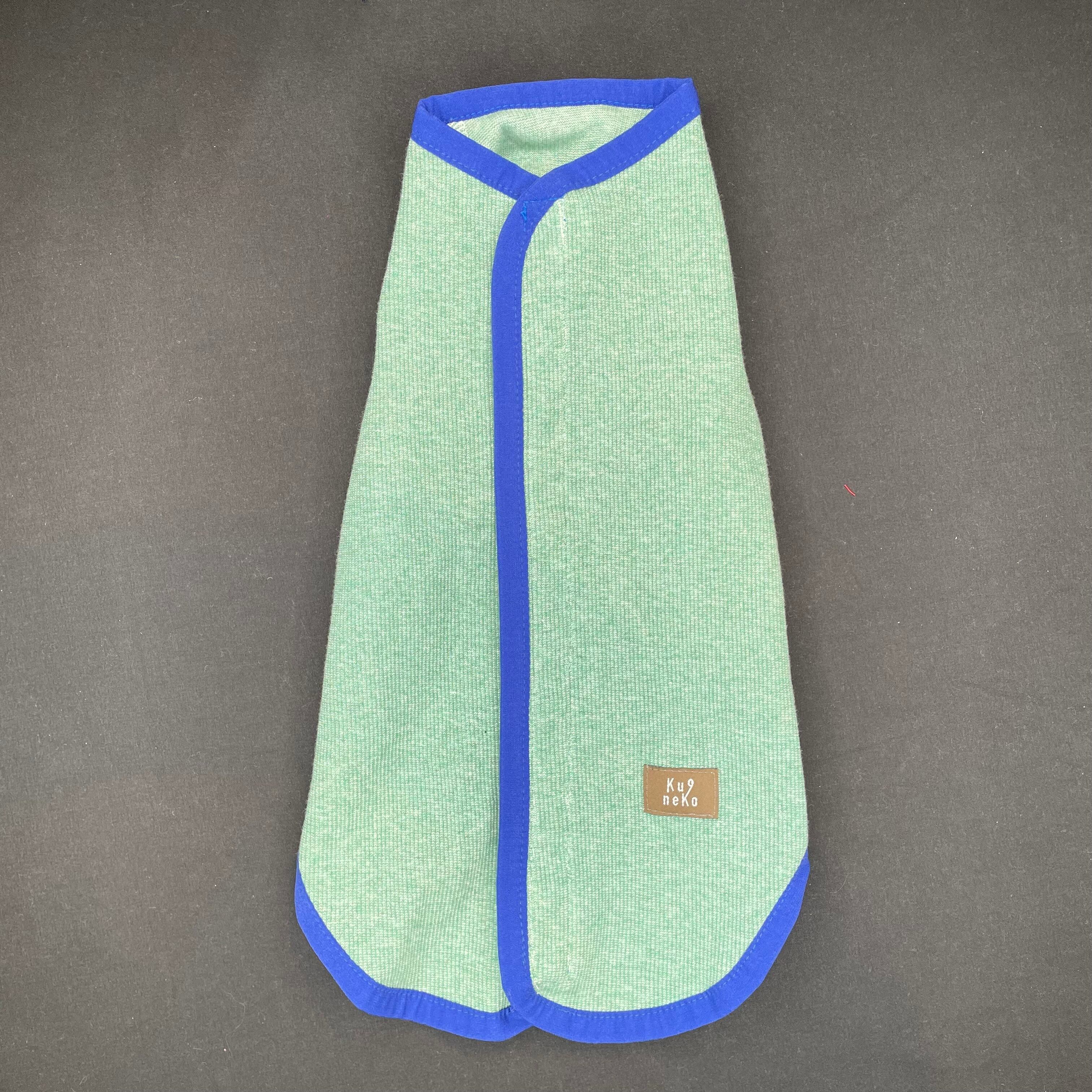 おしゃれなデザインで動きやすいベストが登場しました!グリーン杢✖️ブルーのシンプルな配色カラーです。肌に優しく動きやすい綿素材を使用しております。背中が開いたスタイルは、着用やすさとおしゃれを兼ね備えています。ぜひ、一度お試しくださいませ! 着心地もデザインも完璧なベストは、きっとネコちゃんの運動シーンに欠かせないアイテムになることでしょう。是非お試しください。