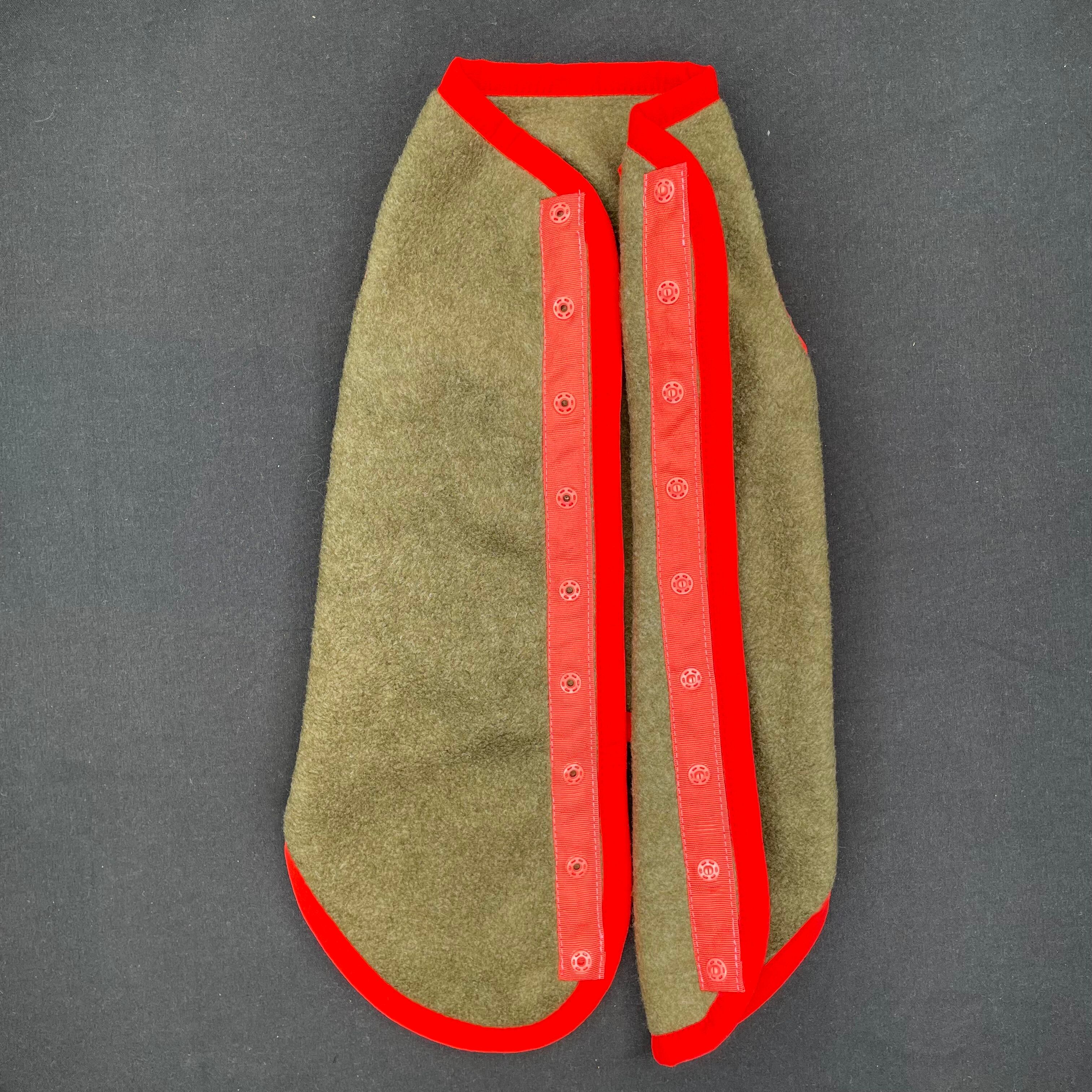 おしゃれなデザインと暖かさを兼ね備えたベストが登場しました!オリーブ✖️赤のおしゃれな配色カラーです。すっきりとしたシルエットで、どんなコーディネートにもマッチします。重ね着にもぴったりのアイテムです。 しかも、素材にこだわったベストはとっても暖かいんです。 猫もこの一枚でおしゃれを楽しみながら、暖かい冬を過ごしてみませんか?