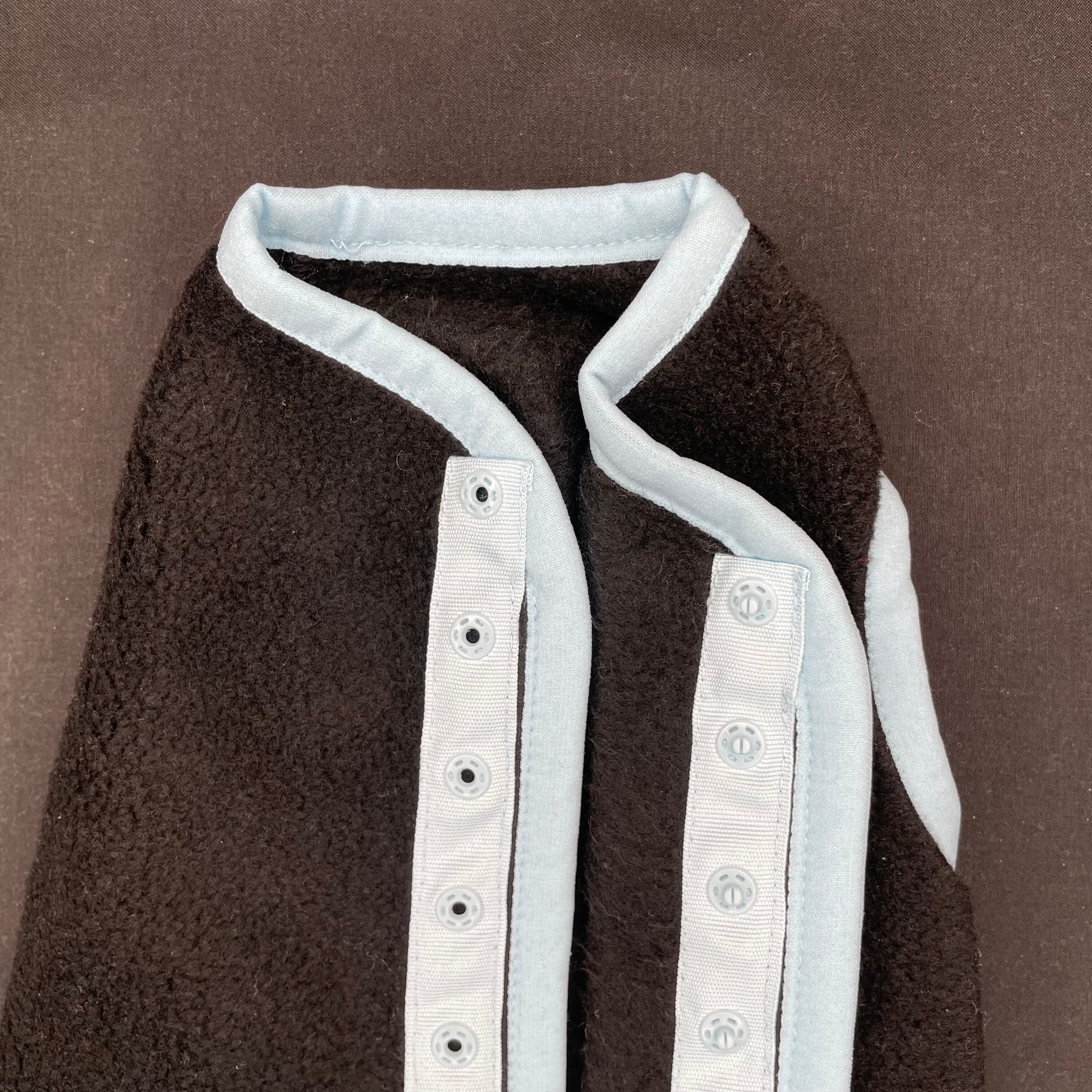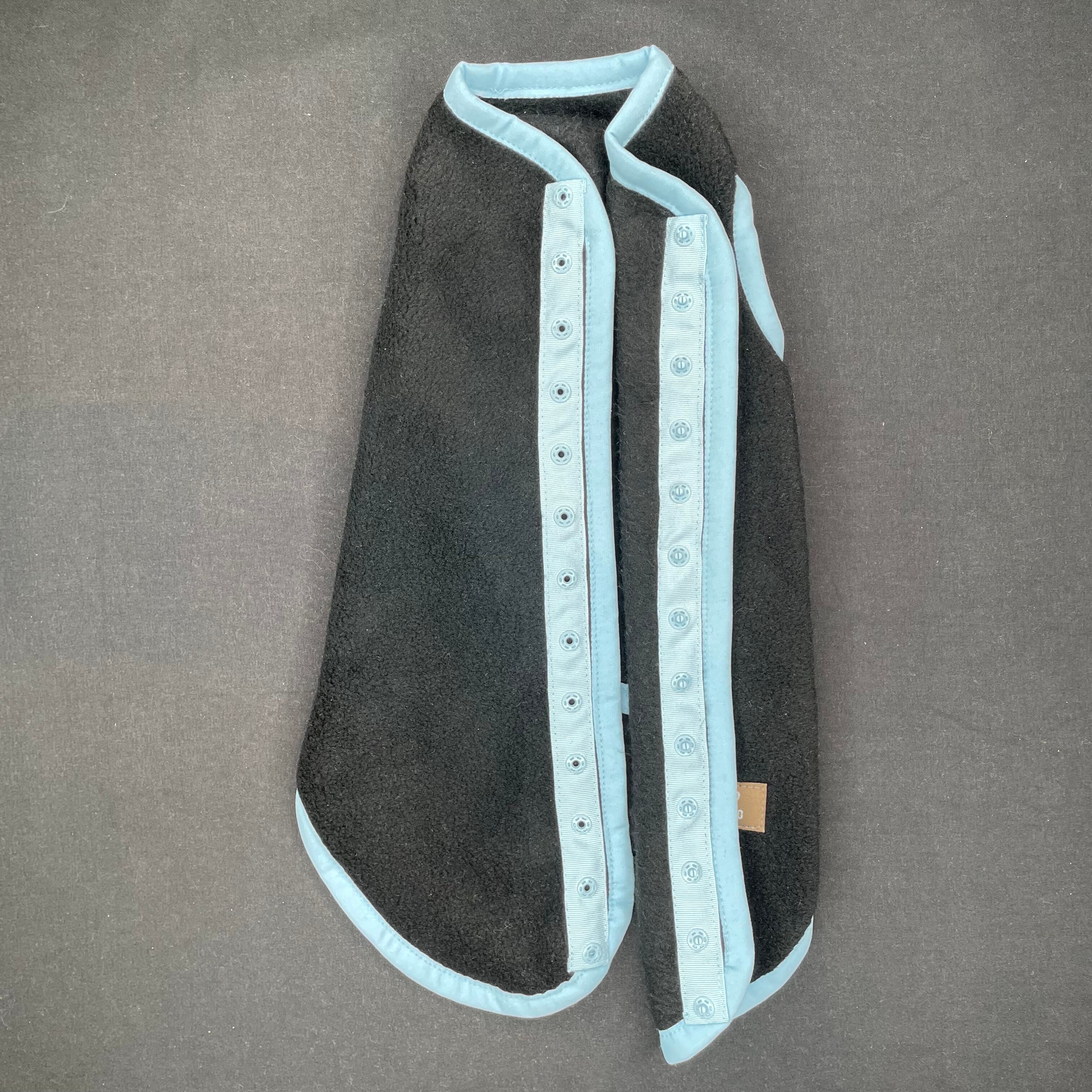 おしゃれなデザインと暖かさを兼ね備えたベストが登場しました!ブラック✖️水色のシンプルな配色カラーです。すっきりとしたシルエットで、どんなコーディネートにもマッチします。重ね着にもぴったりのアイテムです。 しかも、素材にこだわったベストはとっても暖かいんです。 猫もこの一枚でおしゃれを楽しみながら、暖かい冬を過ごしてみませんか?